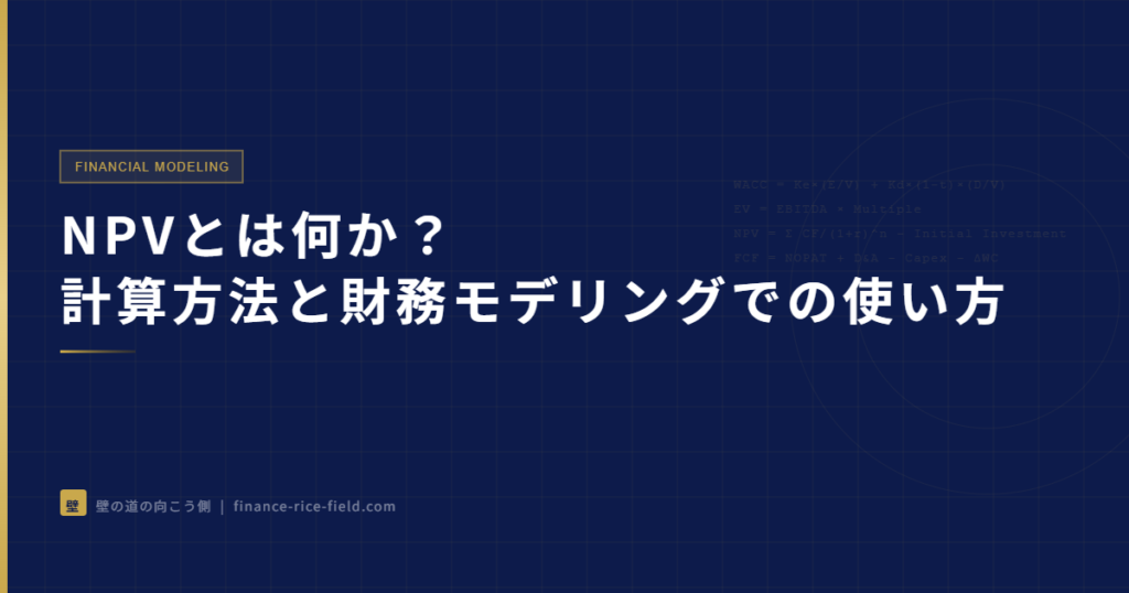 NPV(正味現在価値)は、投資判断の中心に置かれる指標です。M&Aアドバイザリーや事業価値評価の現場では、「このプロジェクトに投資すべきか」という問いに対して、NPVが答えを出す最初の道具になります。本記事では、NPVの定義から計算方法、財務モデリングでの実践的な使い方まで体系的に解説します。