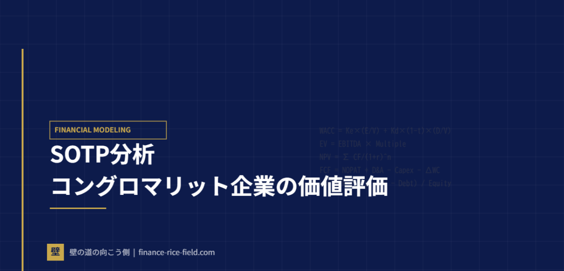 Sum of the Parts(SOTP)分析とは、複数の事業セグメントを持つコングロマリット企業を、各事業セグメントに分解して個別に評価し、それらを合算して企業全体の価値を求めるバリュエーション手法です。「各部分の合計が全体の価値」という考え方から名称がつきました。
